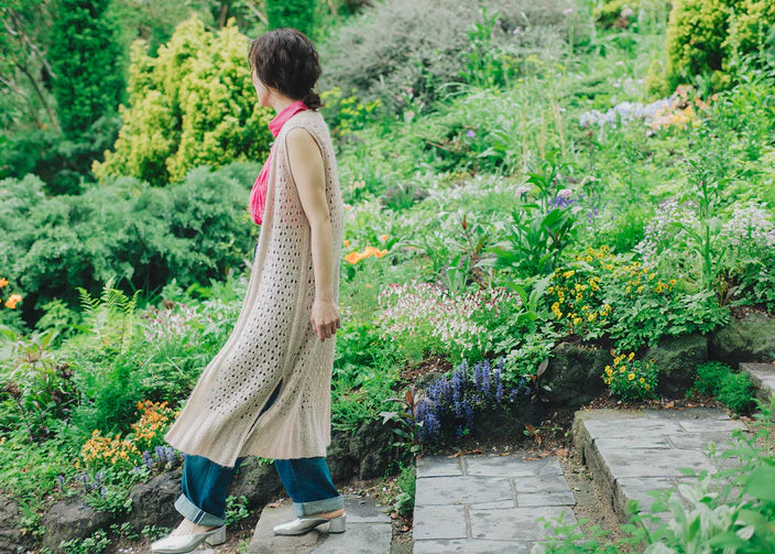 The theme of the first commemorative issue is gardens. You might stop knitting in the middle of the day to rest your eyes and look at the flowers from the window, or get busy gardening. For people living in big cities with little greenery, gardens are a precious place that gives peace and allows you to feel the change of seasons. This collection of 12 knitwear pieces, full of details and textures, was inspired by gardens. All of the pieces are inspiring to knit in preparation for the pleasant spring, a change from the cold winter.