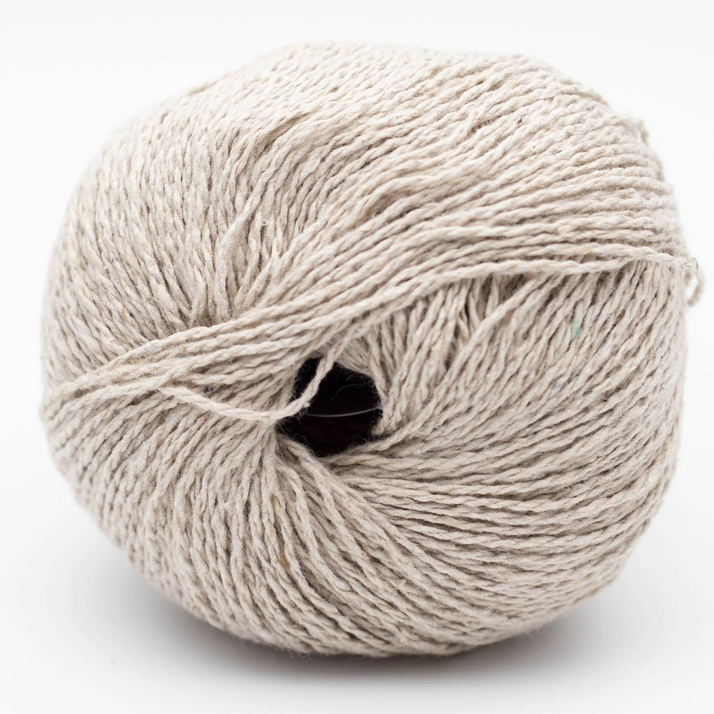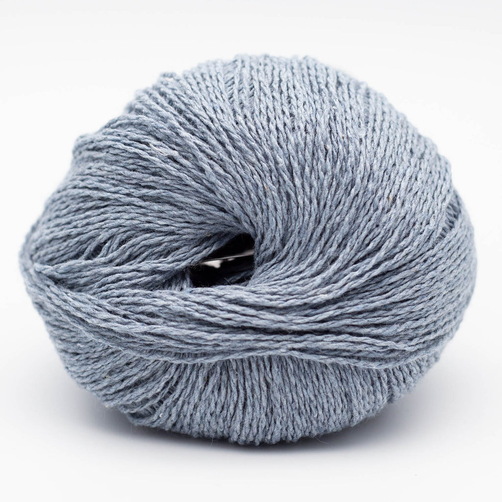 Reborn Denim is Kremke Soul Wool's contribution to slow fashion: This yarn is made from 85% recycled Denim, 10% Premium (not recycled) Cotton and 5% other fibres, which are labels, sewing thread and other fibres attached to the clothes used. Reborn Denim feels almost like a soft linen and has an interesting twist.